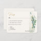 Un design unique pour votre mariage. La carte de réponse présente une illustration aquarelle avec de l'eucalyptus, de la verdure avec des touches chic de faux or. Personnalisez ce modèle avec toutes vos informations. Si vous avez besoin d'aide ou de couleurs supplémentaires, veuillez me contacter (Maria) en cliquant sur le bouton ci-dessous.