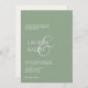 Minimaliste et chic. Ce faire-part de mariage élégant et simple dispose d'un joli ensemble de polices contemporaines et d'accent de script. L'avant de la carte comprend une combinaison de sauge vert tendance. Les noms de couple sont répétés à l'arrière en vert sauge, contre un arrière - plan crème. La collection de mariages complets peut être consultée ici : https://www.zazzle.com/collections/modern_chic_script_wedding_collection-119480419775094242