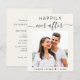Faire-part de mariage crème légère abordable avec votre photo et "Happily Ever After" écrit dans un mélange de typographie simple et d'un script chic avec des swashes.et vos prénoms et votre date de mariage réunis avec un coeur. Sur le dos, personnalisez votre invitation en typographie élégante. Ce papier semi-brillant à budget est similaire en poids au papier photo — les versions traditionnelles de stock de carte sont également disponibles (message pour le lien).