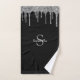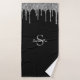 Profitez de ce design élégant avec votre nom et monogramme ou initial avec une parties scintillant argentée chic et brillante goutte sur un arrière - plan noir.