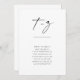 Ces cartes de sièges simples mais élégantes paraîtront extraordinaires à votre mariage ou autre événement! Facilitez la recherche du numéro de table de vos invités en organisant leur nom par ordre alphabétique. Doté d'une police sans empattement simple et propre avec une police manuscrite avec accentuation de script. Personnalisez le panneau avec tous vos noms d'invités qui commencent par les lettres T-Z. Si vous aimez ce design, n'hésitez pas à consulter les autres cartes alphabétiques de classement de sièges de notre collection Modern Script!