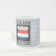 Chicago Dutch American Shield Mug. Design hollandais de Chicago, dans le style d'un panneau de route cool américain. Le texte Chicago Dutch est en haut et en bas, avec le drapeau de la ville de Chicago et le drapeau de la Pays-Bas à l'intérieur du panneau de route. Idéal pour les Chicagoens d'origine hollandaise, et pour les anciens dans la ville venteuse.