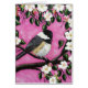 Le Chickadee noir de casquette est vu reposer ici au printemps des fleurs. L'image est d'une peinture originale par le lac international Jennifer d'artiste.