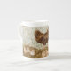 jolie porcelaine, bonne dimension effet brillant bien dans l'ensemble. Le motif et les couleurs sont réussis.Je trouve néanmoins dommage de ne pas occuper tout l'espace avc le motif car la partie rouge au dos de la tasse est trop présente et pas intéressante visuellement.