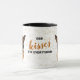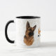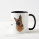 "Les baisers GSD réparent tout" déclare cette mignonne tasse pour le propriétaire allemand Shepherd Dog. L'image de chaque côté est un portrait d'un beau GSD. Les images et le texte sont placés sur un arrière - plan blanc parsemé de confettis dorés.