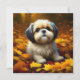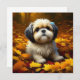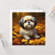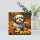 Mignonne chiot chien jouant dans la carte des feuilles d'automne jaunes. Shih Tzu ou Lhaso Apso.
