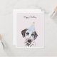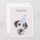 Pour tous les Amoureux de les chiens dalmates, voici une carte pour vous. Un joyeux anniversaire de votre chien dalmate. Un chien dalmate d'aquarelle portant un casquette de fête est au centre de cette carte d'anniversaire.
