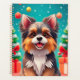 Chien joyeux de Noël assis parmi les décorations de Noël et les cadeaux festifs. La scène évoque la joie et l'esprit des fêtes. Parfait pour les salutations et la décoration saisonnière.