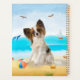 Le chien mignon assis sur la plage est une idée cadeau parfaite pour quelqu'un qui aime cette race de chien.