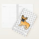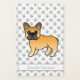 Illustration originale de Destei d'un mignon blouson couleur fawn French Bulldog race dog. Il y a aussi une zone de texte personnalisable pour un nom ou un titre. L'arrière - plan a un motif gris clair d'empreintes de pattes de chien.