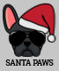 Joignez-vous à la fête avec ce mignon sweat - shirt à capuche de Noël. Le design comprend un bulldog français de couleur noire portant un chapeau de Père Noël rouge et des lunettes de soleil d'aviateur avec le libellé "Père Noël Paws" imprimé en dessous.