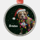 Un ornement de vacances amusant dispose d'un chien américain Staffordshire Terrier avec Père Noël casquette et feux de Noël festifs. Ajoutez une touche personnalisée avec le nom du chien ou un autre message spécial. Bonne idée cadeau pour les amoureux de les chiens !