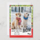 Chien Maman Joyeux Noël Pin Moderne Floral Photo Cartes de Noël. Ce design moderne présente une superposition de texte noir "Maman" sur votre photo préférée avec le texte modifiable "Joyeux Noël (votre texte et votre nom)" est écrit dans la typographie moderne accentuée par des empreintes de pattes sur un motif floral de pin aquarelle et saint Noël. Personnalisez le texte en modifiant la zone de texte.