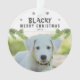 Cute Chien Photo Pine Branche Snowflakes Joyeux ornement de Noël. Branches de pin vert et flocons de neige noirs. Ajoutez la photo, le nom et l'année de votre chien. Vous pouvez utiliser cet ornement personnalisé pour n'importe quel animal de compagnie. Un grand gardien de vacances pour animaux domestiques.