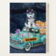 Un charmant chien sibérien Husky Dog assis sur un camion d'Halloween avec des crânes est une idée cadeau d'Halloween parfaite pour quelqu'un qui aime les chiens.