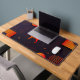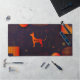 Il s'agit d'un tapis de bureau abstrait aux formes géométriques et à l'ambiance high-tech. Il y a aussi une silhouette de chien de grande race avec un nom personnalisable.