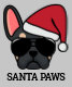 Rejoignez les festivités avec ce mignon sweat - shirt à capuche de Noël en bulldog français. Le design comprend un bulldog français noir et bronzé portant un chapeau de Père Noël rouge et des lunettes de soleil d'aviateur avec le libellé "Père Noël Paws" imprimé en dessous.