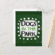 "Dogs In The Park" est un design de texte amusant avec une forme d'accent blanc entourée de points blancs texturés.
