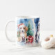 Célébrez la saison des Fêtes avec cette charmant tasse avec trois adorables chiens en tenue festive. Chaque chiot est orné d'un chapeau de Père Noël, ajoutant une touche de joie de vacances. Dans un décor hivernal avec des arbres de Noël décorés et des cadeaux emballés, cette magnifique illustration capture la joie et la chaleur de Noël. Parfait pour les amoureux de les chiens, cette tasse fait un cadeau merveilleux ou un ajout festif à votre propre collection.