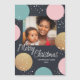 Une carte de Noël moderne avec des points festifs colorés - parties scintillant dorée, rose et bleu. L'expression "Joyeux Noël" est placée dans une police manuscrite fantaisiste. Personnalisez cette carte magnétique de vacances avec votre photo et votre texte.