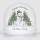 This personalised snow globe is a suitable keepsake for a young grandson or son. The design on the front and back includes a watercolour festive scene of snow, Christmas trees, candy canes, blue Christmas gifts, and a snowman with hat, scarf and ornaments.