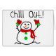 Un bonhomme de neige avec un grand sourire porte des mitaines rouges et une écharpe sur des cartes de voeux, T-shirts, sacs fourre-tout, boutons et autres articles que vous pouvez personnaliser avec un nom ou un autre texte.