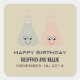 Chimie douce et nerveuse Chimie mignonne Stickers fête d'anniversaire avec une paire décalée de beakers de laboratoire bouillonnant en bleu clair et rose clair. Ces autocollants fantaisistes à thème scientifique sont parfaits pour une fête d'anniversaire à thème scientifique. Facile à customiser, il suffit d'ajouter votre propre texte personnalisé dans les espaces fournis ou de cliquer sur le bouton "Customiser" pour trouver des options de personnalisation supplémentaires.