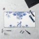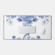 Ce coussin de bureau a l'air d'une porcelaine antique ou d'un vase Ming aux motifs floraux bleus et blancs.