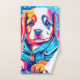 Un design artistique coloré et mignon d'un chiot portant un manteau bleu (ce design Fabriqué avec de l'IA). Commandez dès aujourd'hui et offrez-vous la joie du shopping !