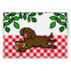 Bande dessinée mignonne et drôle de chien de labrador retriever de chocolat créée par Naomi Ochiai du Japon. Grands cadeaux d'amusement pour les amoureux de les chiens qui aiment le chocolat Labradors ! Vous pouvez ajouter le texte. Conception mignonne de pique-nique avec un motif rouge de guingan.
