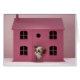 Chiot sortant de la maison de poupée