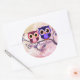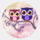 Une paire de chouettes de Kawaii se perchent sur une branche d'arbre en torsion.