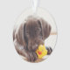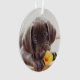 Le chiot de laboratoire au chocolat avec le canard de jouet.