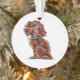 Illustration originale de l'encre/crayon d'Andie d'un chien mélangé de caniche au chocolat portant un collier turquoise au charme du coeur.