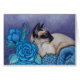 Peinture originale à l'aquarelle de Sandra Gale, avec un chat siamois en point de chocolat, entouré de fleurs bleues sur un arrière - plan violet pâle. Les fleurs sont des hydrangées bleues, des pavots bleus et un rose bleu. Grand design pour les amoureux de les chats et ceux qui aiment particulièrement la race siamoise. Parfait pour les peintures murales dans la chambre ou encadrées avec l'image correspondante. Matching aquarelle peinture d'un point bleu Siamese également disponible.