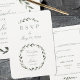 Un RSVP de retour avec choix de repas, avec une branche d'olivier peinte à l'aquarelle et une couronne avec vos prénoms et vos noms à l'intérieur de la couronne.
