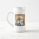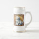 Bière Stein avec un chat dans le style d'Alphonse Mucha! Ce chaton blanc moelleux regarde adorablement le spectateur. Des fleurs décorent la scène. Un cadeau parfait pour les amoureux de les chats et les collectionneurs Art Nouveau !