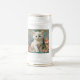 Bière Stein avec un chat blanc dans le style d'Alphonse Mucha! Ce chaton aux yeux bleus pose avec des fleurs roses et des couvertures bleues. Un cadeau fabuleux pour les amoureux de les chats et les collectionneurs Art Nouveau !