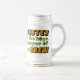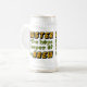 Ce design inspiré des "Miserables" pour les brasseurs de bière dit, "Maître du houblon. Gardez la brasse." Les mots "maître" et brasser" sont faits dans les couleurs de la bière avec des bulles. Le reste est vert, le "o" est remplacé par le "o" et une partie du "K" est remplacée par une clé. Une grande tasse ou un stein pour un brasseur ou un brasseur.