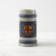 S'il y a un stein que vous voulez dans votre collection, c'est celui-ci! Comme dans le stein allemand, il est décoré d'un arrière - plan bleu cobalt, de fleurs bronzées, de glands et de griffes entourant le bouclier Burke. Célébrez dans le style ou ajoutez comme pièce décorative à votre maison. Fantastique cadeau pour mariages, réunions, anniversaires, Noël, retraites, vous le nommez ils vont l'aimer!