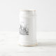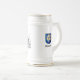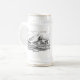 Stein à bière avec dessin et armoiries du célèbre cuirassé allemand Bismarck de la Seconde Guerre mondiale avec le nom du navire écrit en lettres de fracture.
