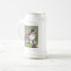 Bière Stein avec un chaton rayé. Des rayures noires traversent la fourrure d’un chaton blanc. Une fleur blanche décore un panier dans un champ herbeux. Un cadeau fantastique pour les amoureux de les chats et les amateurs d'art victorien !