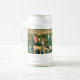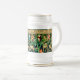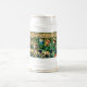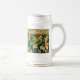 Chope à bière représentant la tapisserie de William Morris Verdure avec cerfs et boucliers (1891-1894). Une scène verdoyante de cerfs buvant dans un bassin d'eau et mangeant des feuilles d'arbres dans une forêt verte. Au-dessus d'eux sont suspendus les boucliers des Chevaliers de la Table Ronde. Un cadeau magnifique pour les amateurs d'Arthuriana et les collectionneurs d'art victorien.