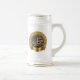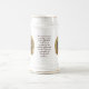 Add your name to the golden banner area beneath the decorative vintage-style frame. This piece features a significant quote, illustrations of the American flag, a bold eagle, the Liberty Bell, the Statue of Liberty, and a cross, along with the phrase "celebrating America" 1776-2026, marking the 250th anniversary. The design emphasizes themes of patriotism and faith. This ceramic German-style beer stein is a collectible suitable for any collection commemorating the 250th Anniversary of America. It is a budget-friendly gift that may serve as a family heirloom over time.