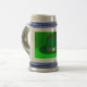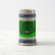 Une photo d'un Casquette de Derby Vert qui est lumineux et coloré avec un groupe d'argent avec quatre trèfles de feuilles, c'est sur un STEIN DE BIÈRE.