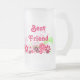 Cette tasse de bière givrée belle par amitié indique le "meilleur ami". Ces un bon nombre colorés et gais de caractéristiques de conception de fleurs roses avec les vignes vertes tourbillonnantes derrière elles et l'arrière - plan a les roses roses faibles.