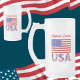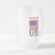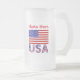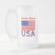 Tasse à bière ou stein en verre dépoli personnalisée avec le drapeau des Etats-Unis d'Amérique avec les lettres USA ci-dessous en rouge, blanc et bleu avec étoiles et rayures, trouvé dans le drapeau. Personnalisez en ajoutant votre nom, en lettres rouges, ou, pour un cadeau créatif, en ajoutant le nom de quelqu'un d'autre. Idéal pour des vacances patriotiques. Amusement pour les réunions de famille, les groupes de voyage et les clubs. Un cadeau de ménage réfléchi. Un père patriote adorerait ça pour la Fête des pères.