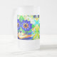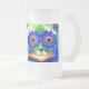 Mug de bière en verre dépoli avec la peinture animale de Louis Wain Cat Flower Eyes (1860-1939). Un chat arc-en-ciel grince largement. Des fleurs bleues recouvrent ses yeux. Un cadeau merveilleux pour l'art amoureux des chats et anglais.