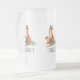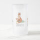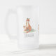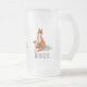 Une tasse givrée personnalisée conçue avec une aquarelle d'une mère et d'un bébé renard. Le jeune renard regarde sa mère avec amour et appréciation. Tous deux assis sur de l'herbe. Couleurs orange et bronzées.
