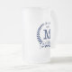 Ces verres à bière en verre givré de 16 oz sont un excellent cadeau pour les ushers de votre mariage. Ils sont traditionnels mais modernes avec une couronne de laurier bleue et une bannière avec la date du mariage, le titre / poste et la première initiale et le prénom, le tout en bleu. Ils seraient parfaits pour un enterrement de vie de garçon ou un week-end.